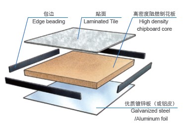 功能簡介:地板采用高密度阻燃刨花板(720Kg/m3)基材,表面可粘貼防靜電HPL、導電PVC,底面采用優質鍍鋅板(或鋁皮)封底,四周采用導電膠條封邊。